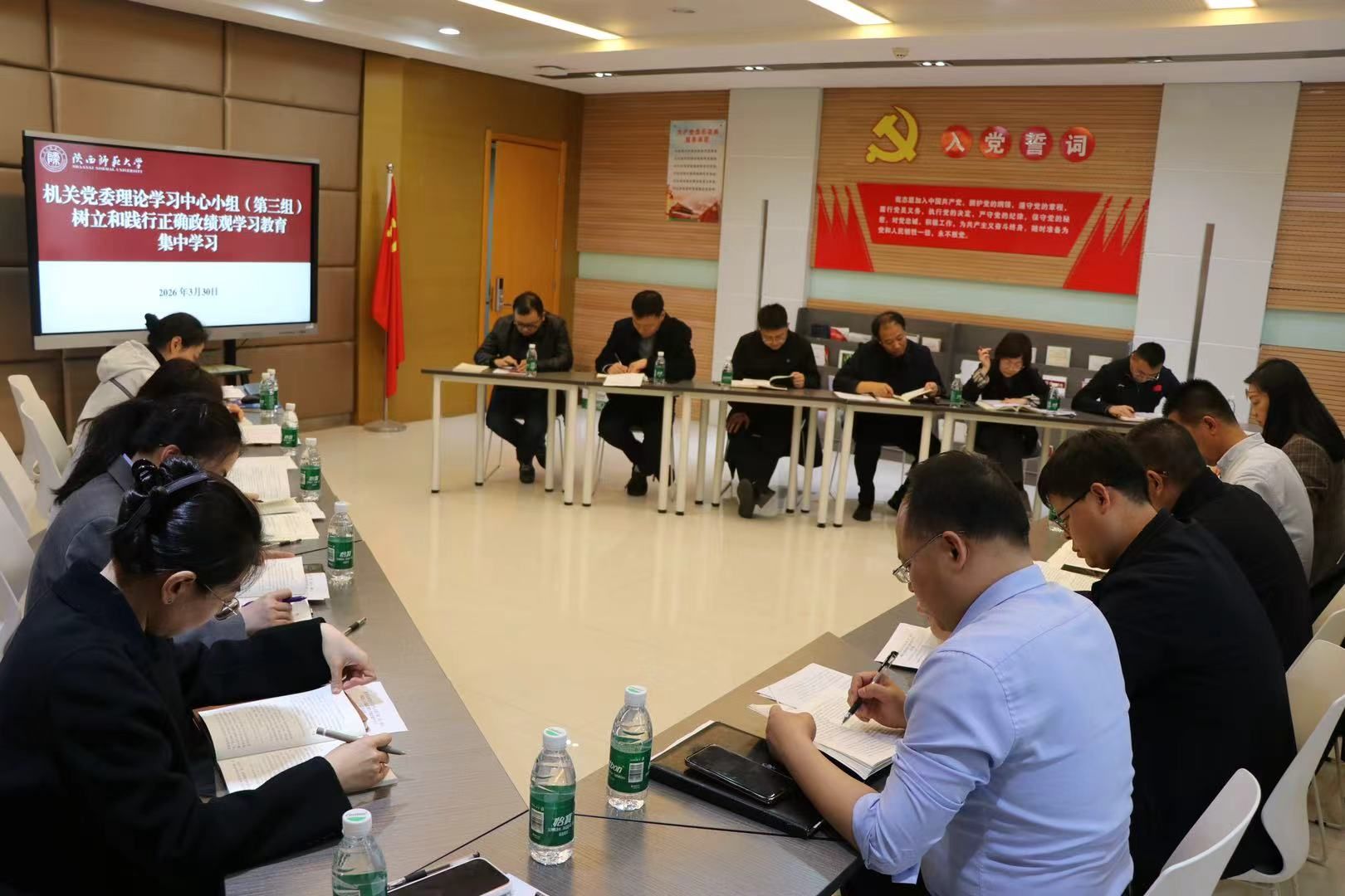 3月30日下午,机关党委理论学习中心组(第三组)在文汇楼A段503党员活动室,组织开展树立和践行正确政绩观学习教育集中学习活动。机关党委书记郝鹏展出席会议,党委学生工作部(武装部、学生处)、研究生院(党委研工部)、招生就业处、国际交流与合作处(港澳台办公室、“一带一路”办公室)、团委等部门全体处级党员领导干部参加。会议由研究生院(党委研工部)党支部书记贾颍辉主持。
